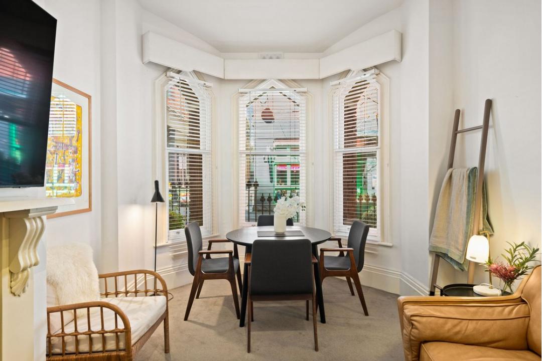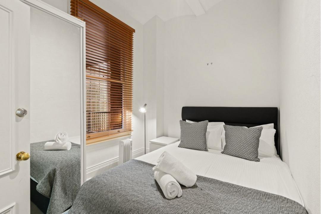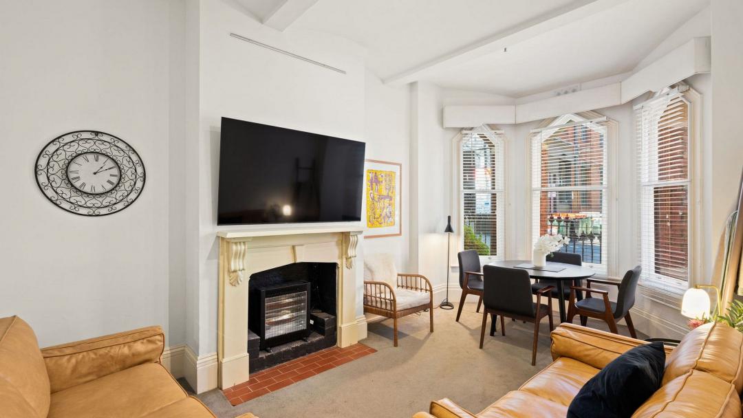 This apartment is located in the heart of Melbourne's theatre district, lively CBD, and Chinatown, this stylishly furnished and cozy two-bedroom apartment is your home away from home. A warm, light filled apartment that boasts a large lounge room with bay windows. The windows on the street frontage have all been double-glazed for guest comfort.