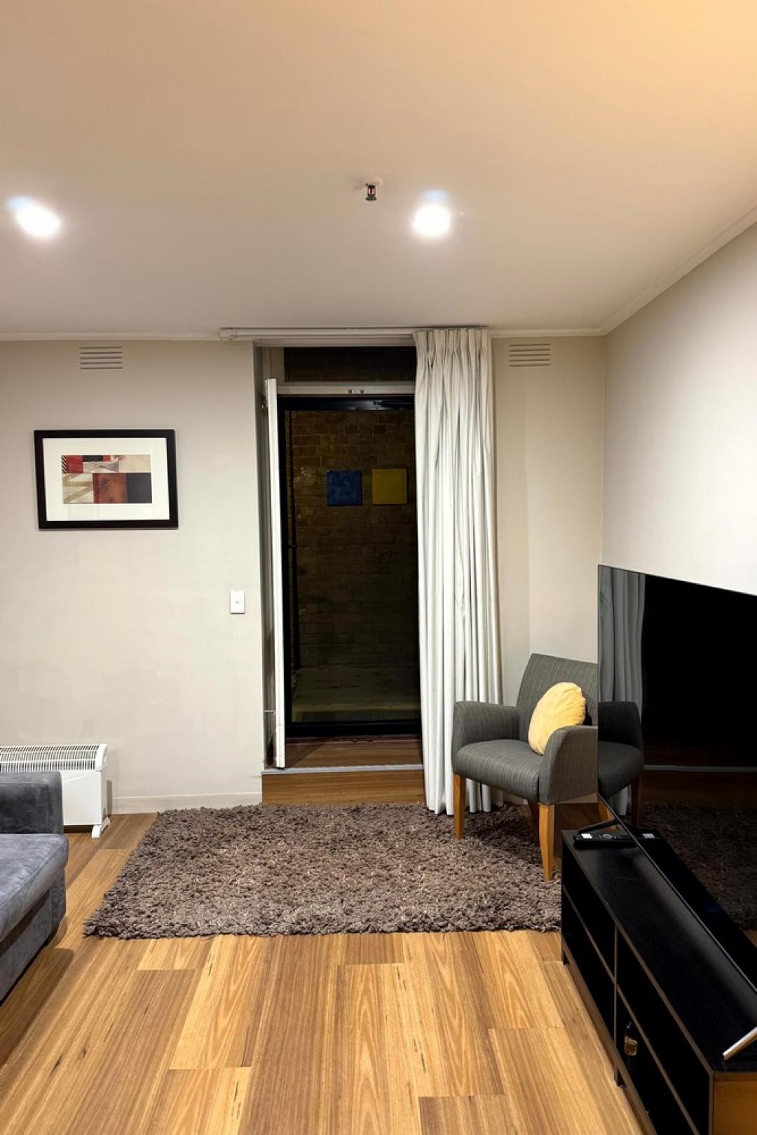 This apartment boasts a sunny private courtyard with access to the complex's communal swimming pool as well as space that you don't regularly find in an inner city apartment. The ceiling height gives an unbeatable charm. Located in the heart of Melbourne's theatre district, lively CBD, and Chinatown, this will soon be your go to home away from home. Fully self-contained and offers every convenience you'll need.